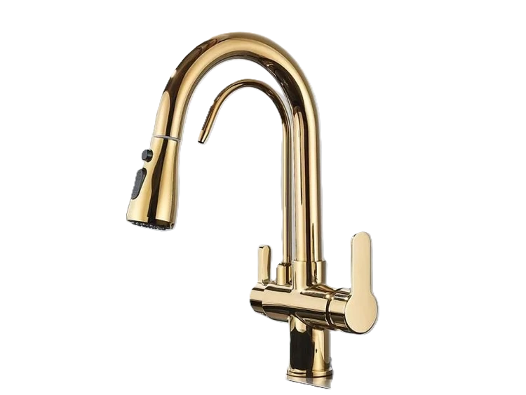 شیر ظرفشویی شاوری طلایی دو منظوره آب تسویه دار برند DIKALAN